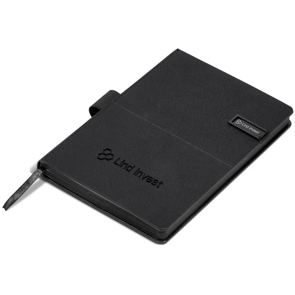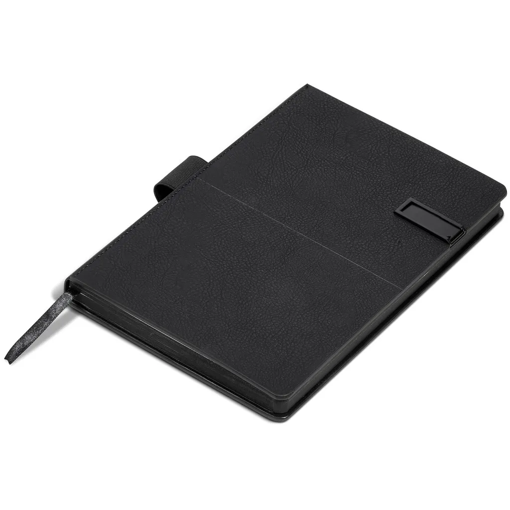 This distinguished gift set combines an Alex Varga Corinthia ball pen with an A5 hard cover notebook with a USB memory stick. The memory stick has a generous 32GB storage capacity, and slides into a slot embedded in the cover of the notebook.