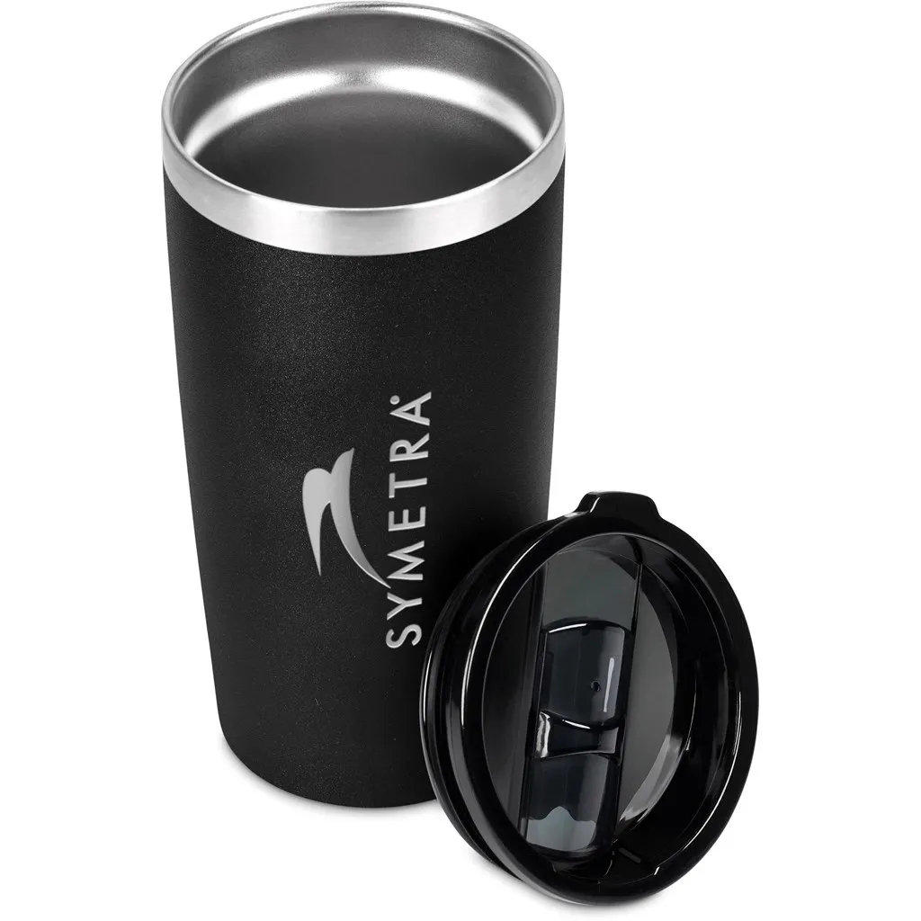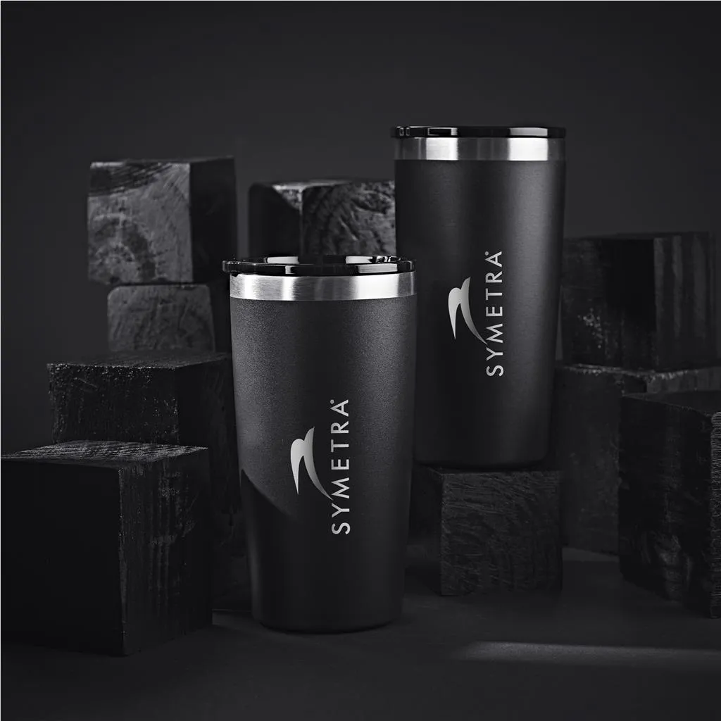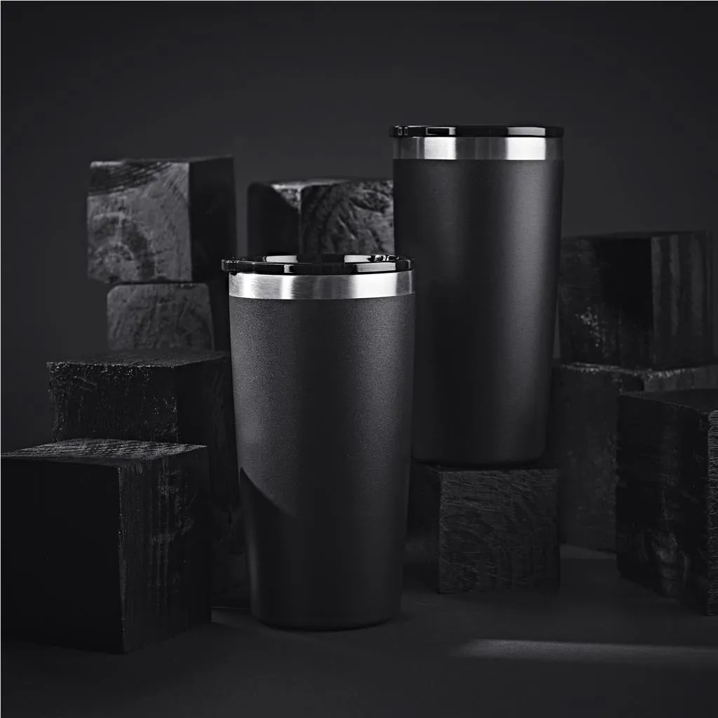 The double-wall stainless steel, vacuum construction of this contemporary drinking tumbler will keep liquids hot or cold for hours. Combine that with the generous 580ml size, and you have the opportunity to pour a large cup of tea or coffee which you can enjoy at your own pace. The vacuum design will keep the heat from transferring to your hands, and seeing as it is handle-free, you can slip it snuggly into the drinks holder of your car.