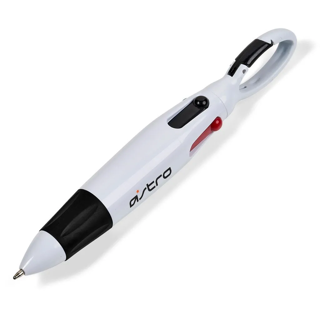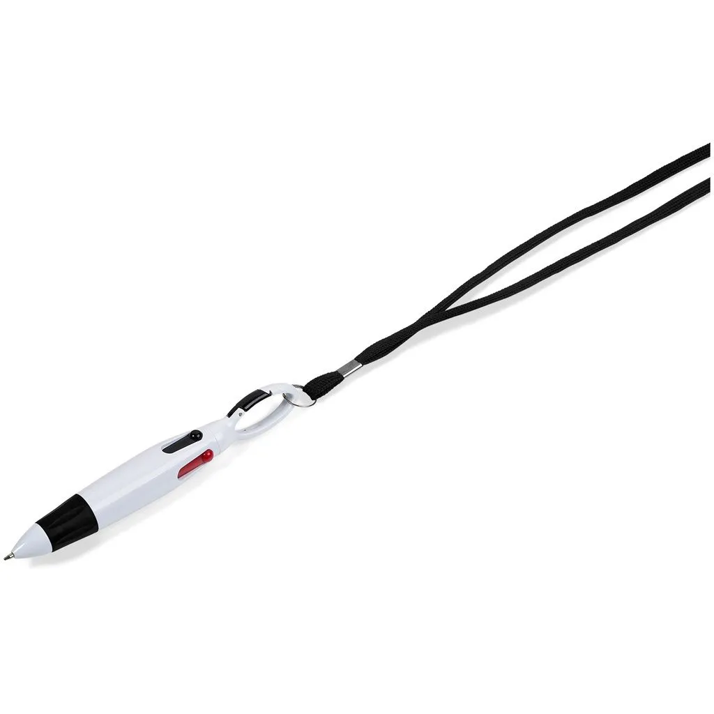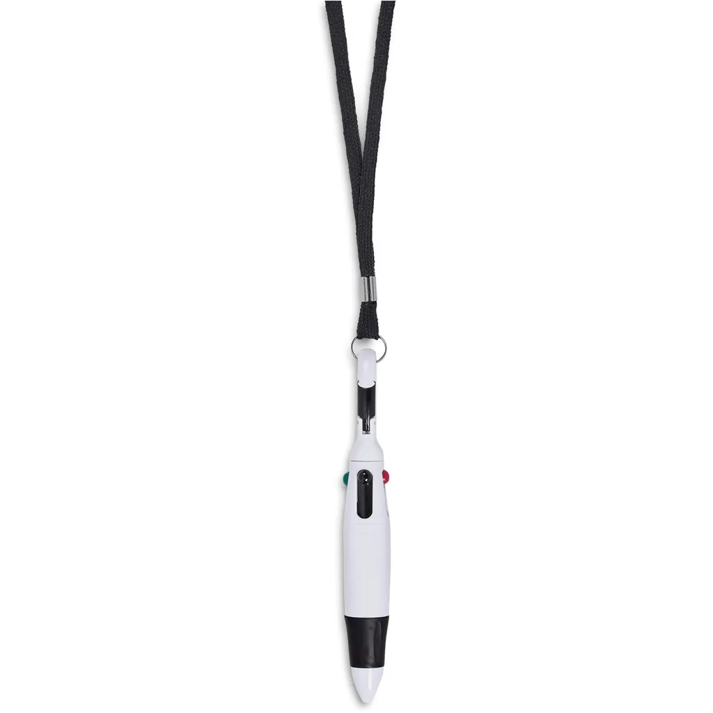 Get 4 different colour ink refills in 1 with this useful carabiner clip ball pen, which includes a slim, basic lanyard to carry on your neck. Consider adding your own custom-made and branded lanyard.