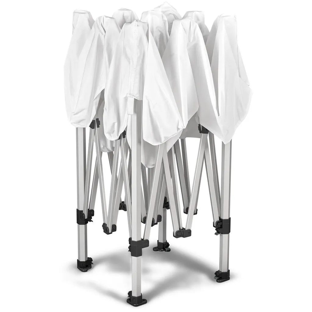 This gazebo is perfect for brand activations, product launches, sporting events and mobile retail shops to mention a few. The Petite Gazebo features extra collapsible legs that slide in making it compact and portable allowing for easy transportation.