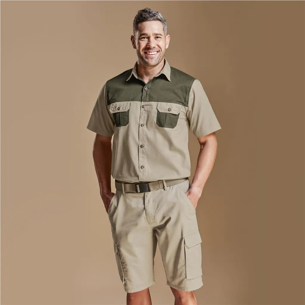 Mens Short Sleeve Serengeti 2-Tone Bush Shirt